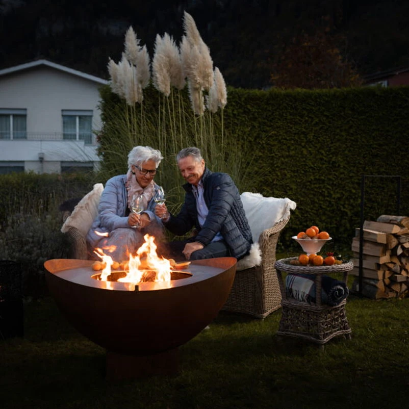 Zünden Sie das Feuer an und lassen sich von dem magischen Tanz der Flammenverzaubern. Die Feuerstelle ‚Wave‘ von Feu du Jardin spendet Wärme und kreiert eine einzigartige Atmosphäre. Diese Feuerstelle präsentiert sich in trendiger Rostoptik und besticht durch eine elegant-schwungvolle Linienführung sowie durch einen stabilen Aufbau.