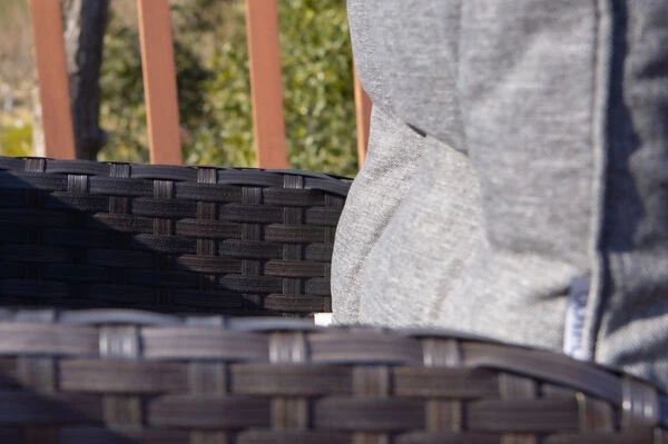 Das Untergestell des Möbelstücks besteht aus Aluminium, dies macht es nicht nur stabil, sondern sorgt auch dafür, dass es sich aufgrund des relativ geringen Gewichts ganz leicht hin und her stellen lässt. Dazu sorgt die Pulverbeschichtung auf dem Aluminium für eine verbesserte Korrosionsbeständigkeit. Das Aluminiumgestell wird mit Polyrattangeflecht bespannt. Aufgrund der enormen Wetterbeständigkeit von Polyrattan können Sie diese Diningsessel ohne Bedenken nach Abnahme der Polster das ganze Jahr über im Freien stehen lassen. Das flache Geflecht ist in der Farbe braun (Faser w3) gehalten und integriert sich so mühelos in alle Terrasseneinrichtungen! Gemütliche Sitz- und Rückenpolster (100 % Olefin (200 g/m³)) mit einer Stärke von ca. 5 cm sorgen für höchsten Sitzkomfort. Farblich sind die grau melierten Polster perfekt auf das Geflecht abgestimmt. Die synthetische Faser Olefin wird für ihre Hitzebeständigkeit und optimalen Trage- und Pflegeeigenschaften geschätzt. Sollten Sie einmal Falten in Ihren Polstern haben, werden diese bei Wärme von alleine verschwinden, sodass die Bezüge komplett bügelfrei sind. Textilien aus Olefin sind bequem, hautkühlend, waschbar und bügelfrei. Sie eignen sich perfekt für den Einsatz im Freien, was nicht zuletzt an ihrer wasserabweisenden und atmungsaktiven Materialzusammensetzung liegt.
