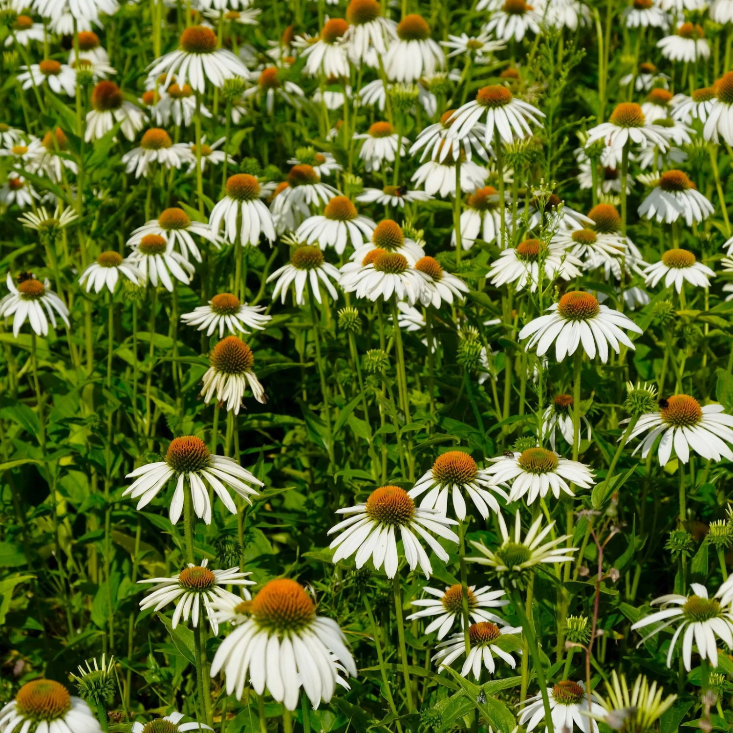 Der weiße Sonnenhut ist als Auslese aus der bekannten, rotblühenden Sonnenhut-Art entstanden. Bienen und anderen Insekten dient die blühfreudige Pflanze über viele Wochen als wichtige Nahrungsquelle, auch Schmetterlinge lieben die zauberhafte Staude.